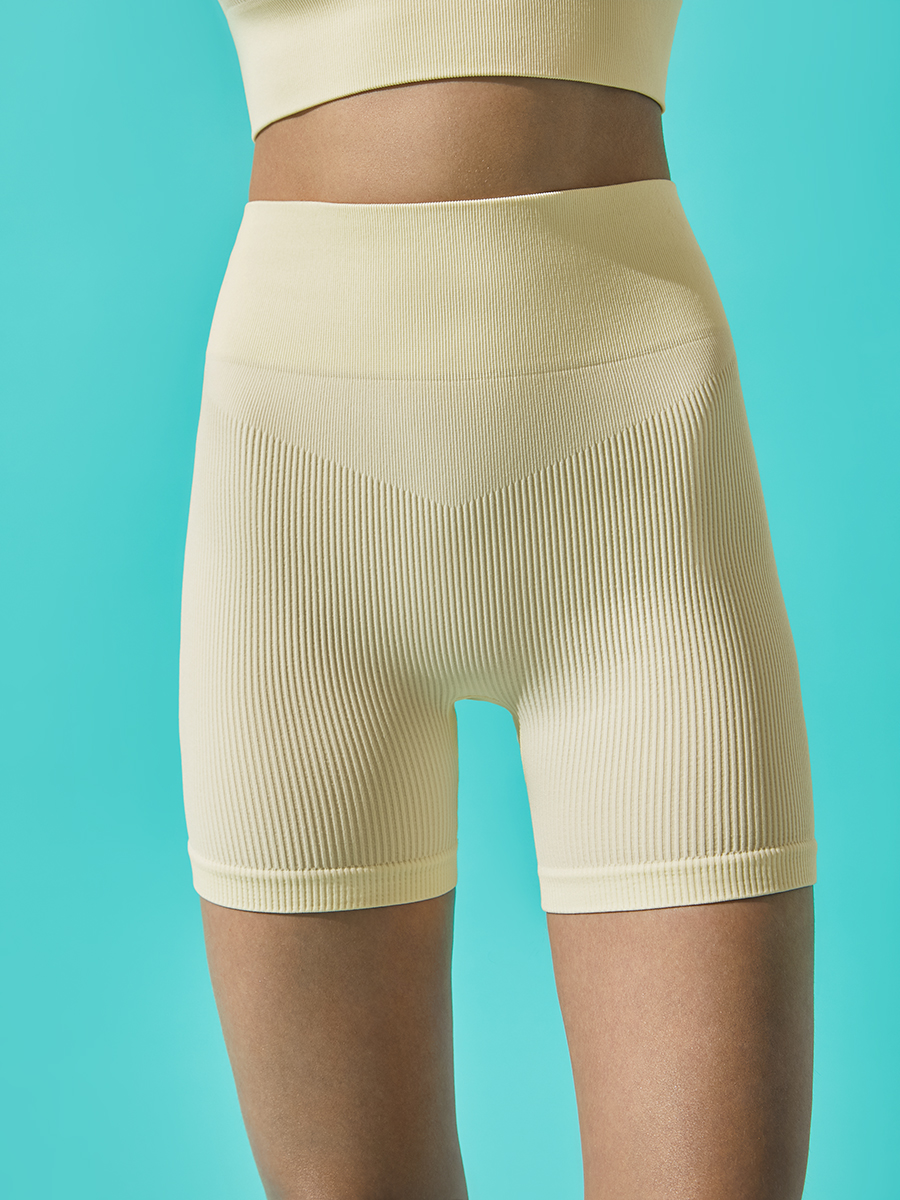 Женские спортивные шорты в рубчик с высокой линией талии. Превосходно облегают, подчеркивают красоту форм и обеспечивают полную свободу движения.