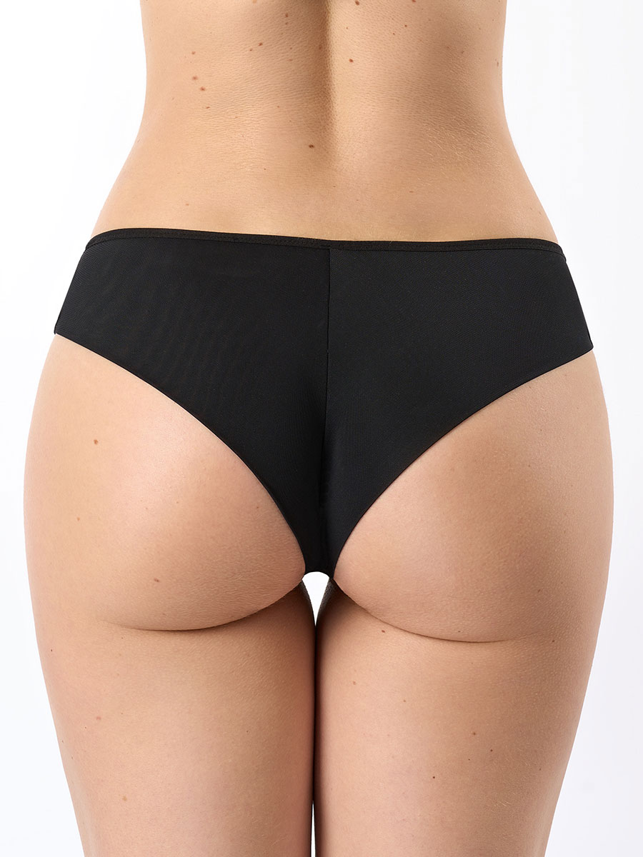 Трусы «бразилиана» из сетки со средней линией талии. С изящной цветочной вышивкой и контрастной отделкой по краям. Эффектно подчеркивают бедра, придают им округлую форму и делают фигуру более соблазнительной. Ластовица из мягкого хлопка обеспечивает дополнительный комфорт.